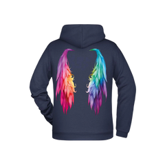 Die farbintensiven Flügel auf dem Rücken wirken kraftvoll und selbstbewusst, ohne aufdringlich zu sein. Der gerade Schnitt sorgt für eine entspannte, maskuline Passform.