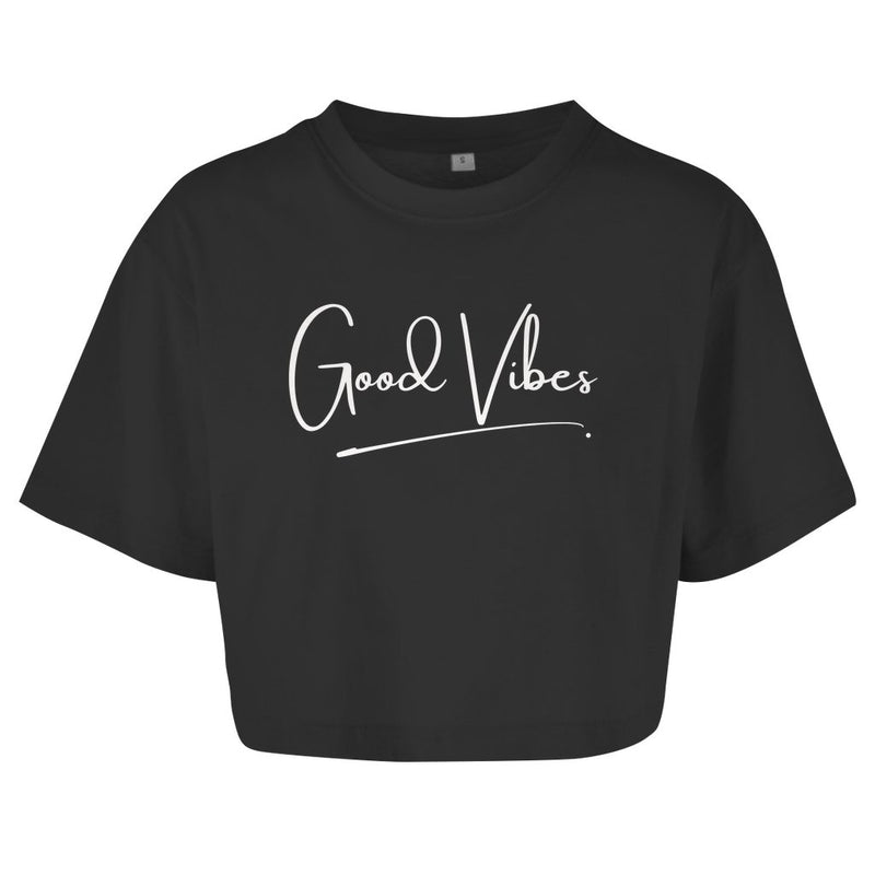 Das Damen Oversize Crop Top „Good Vibes“ ist das perfekte Kleidungsstück für den Sommer. Mit seinem bauchfreien Schnitt, der legeren Oversize Passform und den kurzen, weiten Ärmeln strahlt es Sportlichkeit und Lässigkeit aus. Der Rundhalsausschnitt rundet das Gesamtbild harmonisch ab. Das T-Shirt besteht aus weicher Baumwolle und bietet somit einen angenehmen Tragekomfort.