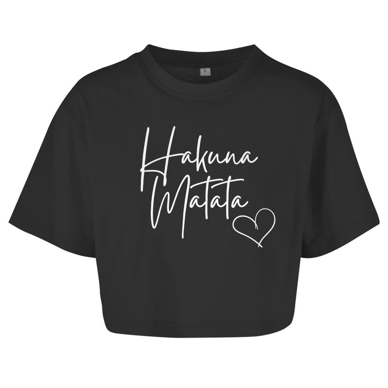 Das Damen Oversize Crop Top „Hakuna Matata“ ist mehr als nur ein Kleidungsstück - es ist eine Ermutigung, das Leben in vollen Zügen zu genießen und sich keine Sorgen zu machen. Mit dem aufgedruckten Motto 'Hakuna Matata' erinnert es uns daran, dass wir uns nicht von Ängsten und Zweifeln einschränken lassen sollten.