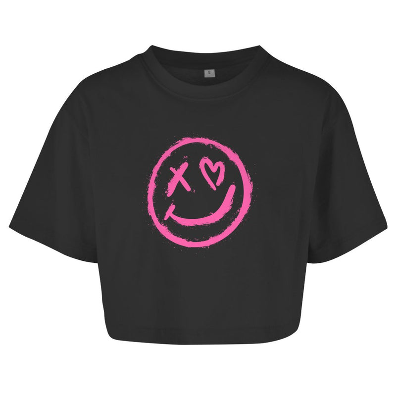 Das Damen Oversize Crop Top „Smiley“ ist ein innovatives und trendiges Kleidungsstück, das perfekt für den Sommer geeignet ist. Mit seinem bauchfreien Schnitt, der legeren Oversize Passform und den kurzen, weiten Ärmeln strahlt es Sportlichkeit und Leichtigkeit aus. Der Rundhalsausschnitt rundet das Gesamtbild harmonisch ab.