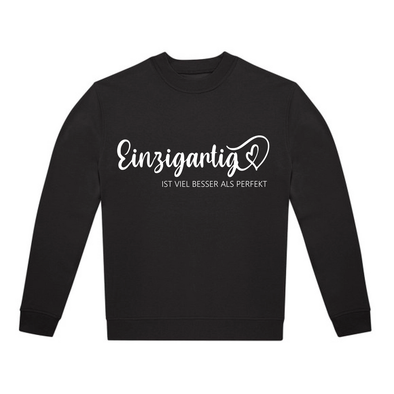 Der Schriftzug „Einzigartig ist viel besser als perfekt“ erinnert dich daran, dass du nichts beweisen musst.
