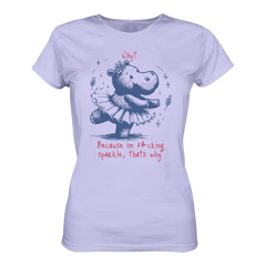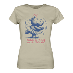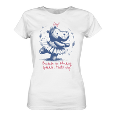 Das verspielte Nilpferd im Tutu trifft auf eine klare Botschaft mit Augenzwinkern. Süß im Look, direkt in der Aussage. Genau dieser Kontrast macht das Motiv stark.