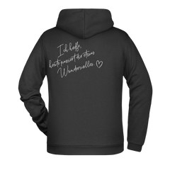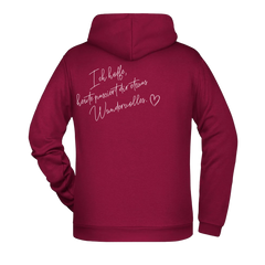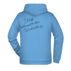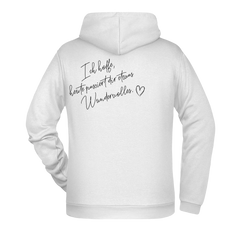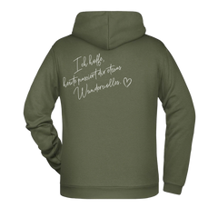Dieser Zipper Jacke trägt eine liebevolle Botschaft auf dem Rücken: „Ich hoffe, heute passiert dir etwas Wundervolles.“ Ein Satz, der Hoffnung, Wärme und positive Gedanken verbreitet und oft genau im richtigen Moment gelesen wird.
