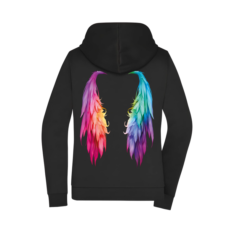 Diese Damen Zipper-Jacke kombiniert eine feminine Passform mit einem starken Rückenmotiv. Die bunten Flügel stehen für Freiheit, Leichtigkeit und innere Stärke. Der taillierte Schnitt betont die Silhouette, ohne einzuengen.