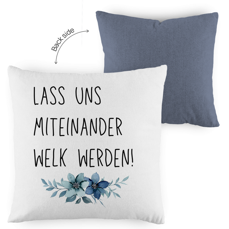 Kopfkissen zweifarbig "Lass uns miteinander Welk werden"