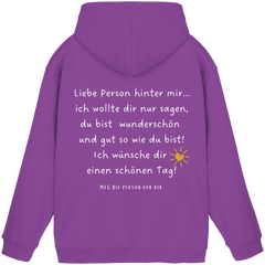Der Aufdruck auf dem Rücken schenkt positive Energie an jeden, der ihn sieht.