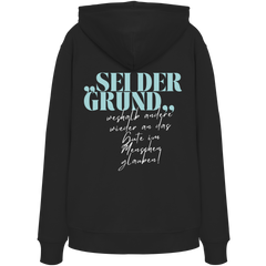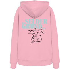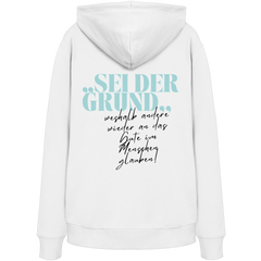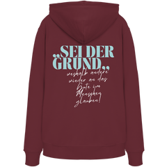Die inspirierende Botschaft „Sei der Grund, weshalb andere wieder an das Gute im Menschen glauben“ steht für Mitmenschlichkeit und Positivität.