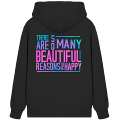 Der Organic Zipper mit dem leuchtenden Happiness-Print kombiniert Komfort und Aussagekraft. Die hochwertige Bio-Baumwolle fühlt sich angenehm natürlich an – ein vielseitiges Statement für jeden Tag.